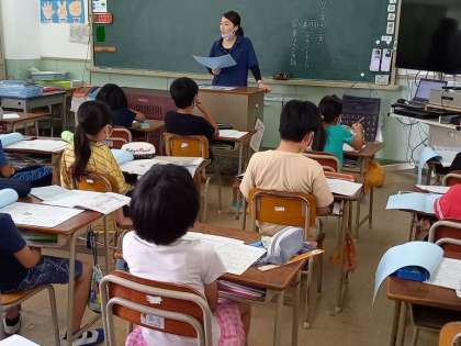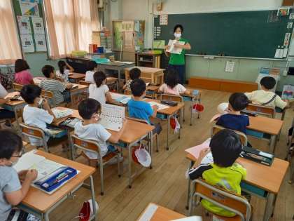 密を避けるため講堂での式は行わず、各教室で放送による終業式となり、校長先生と生活指導の先生のお話を聞いたあと、各教室では1学期の振り返りや夏休みの宿題の配布などが行われました。