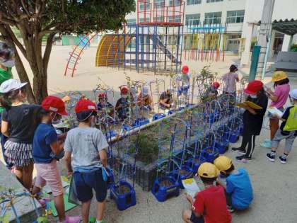 1学期から1年生が育ててきた「あさがお」は、花の時期が終わり、今は「たね」をつけ始めています。