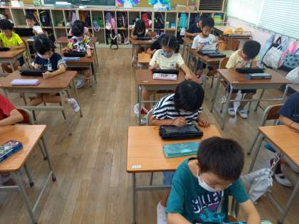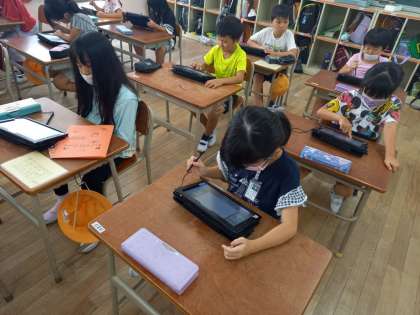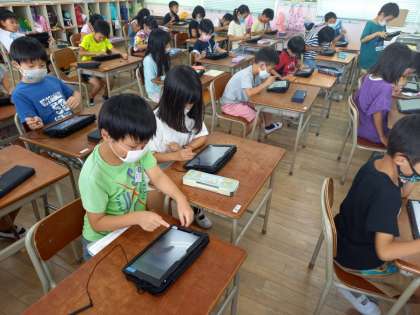 西淡路小学校では、学習の様々な場面でタブレット端末を使っています。
