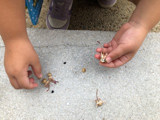 生活科で育ててきたアサガオも秋を前に種を実らせました。今日は1年生が実の中から種を収穫しました。この種は来年入学してくる子どもたちのために残しておきます。実は今の1年生が植えたアサガオも、昨年の1年生(現2年生)が収穫した種を使っています。子どもたちが一生懸命育てた命が、また次の世代への受け継がれていきます。来年の1年生もきっと喜ぶと思います。