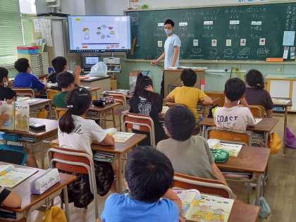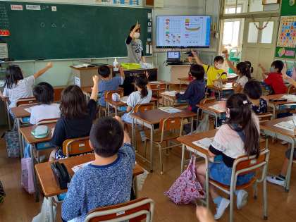 5年生からは週2回、教科の学習として「外国語」の授業がありますが、3・4年生の「外国語活動」では、英語を楽しく学ぶために、歌やゲーム、簡単な英語でのやりとりなど体験型学習を中心に進めていきます。