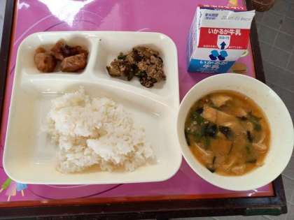ごはん 牛乳 鶏肉の照り焼き みそ汁 なすのそぼろ炒め