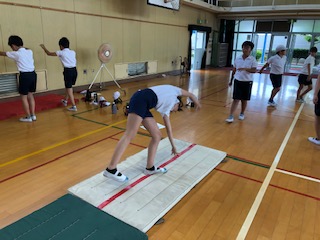 6時間目に体育館からノリノリな音楽。覗いてみると5年生が汗をかきながらマット運動をしています。前転や後転はもちろん、倒立や側転にも挑戦していました。担任も一緒になって体を動かし、運動を楽しんでいました。子どもたちは大丈夫だと思いますが、担任は週末、筋肉痛で苦しむのでしょう・・・