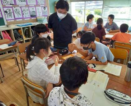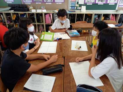 授業では各班に分かれて、班が選んだテーマ(例えば、鉛筆とシャーペンについて)をもとに、良いところと困るところについて話し合い、その根拠となる理由や事例を明確にして、活動を深めていきます。