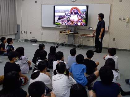 実際に訪れる場所や施設の写真を子どもたちは嬉しそうに眺めながら、先生のお話を聞いていました。