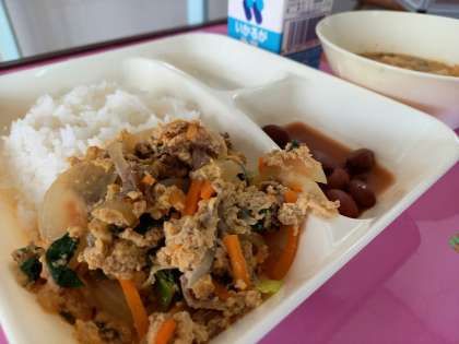他人丼 牛乳 冬瓜のみそ汁 金時豆の煮もの