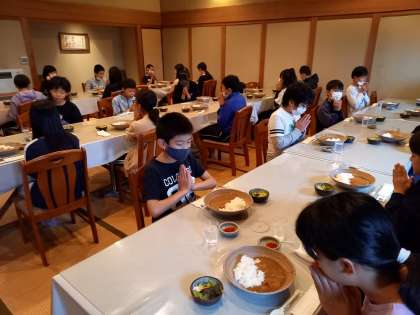 陶芸体験の前に昼食です。昼食のメニューは、カレーライスでした。