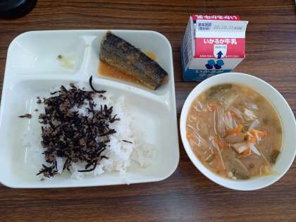ごはん 牛乳 さんまのみぞれかけ みそ汁 牛ひじきそぼろ