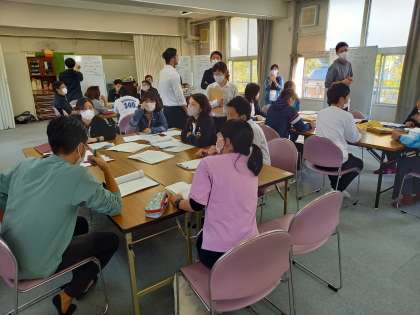 放課後には研究会が開かれ、今日の授業について検証が行われ、よりよい授業づくりのため、活発な討議が行われました。