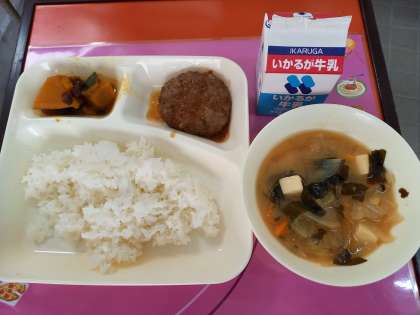 ごはん 牛乳 和風ハンバーグ みそ汁 かぼちゃのいとこ煮