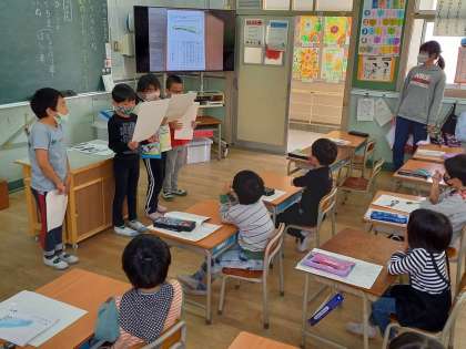 国語の時間に「いろいろなふね」を学習してきた1年生。