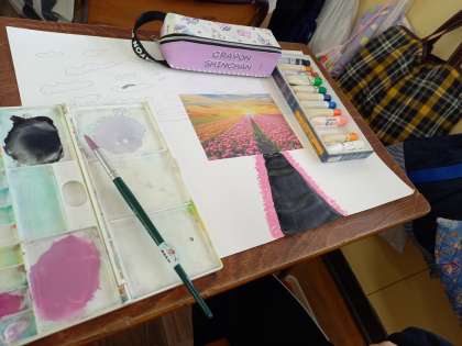 5年生は図画工作で「まだ見ぬ世界」の制作に取り掛かりました。