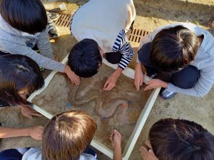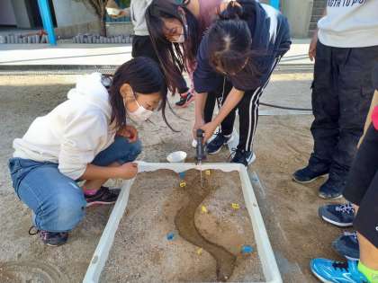 流れる水には、どんなはたらきがあるのか、実験を通して考えます。