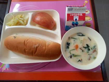 「クリームシチュー」には、しめじ、エリンギ、マッシュルームなど秋の食材である「きのこ」がたっぷりと使われています。