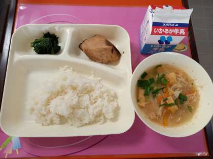 ごはん 牛乳 なまりぶしの生姜煮 みそ汁 ほうれん草のおひたし