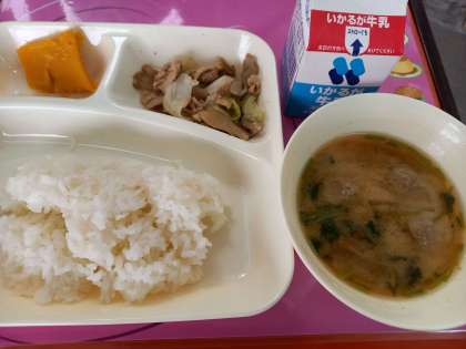 ごはん 牛乳 豚肉と舞茸の炒め物 つみれ汁 かぼちゃういろう