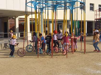休み時間には、たくさんの子どもたちが運動場に出て遊んでいます。
