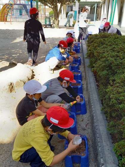 1年生は生活科の時間に、チューリップの球根を植えました。