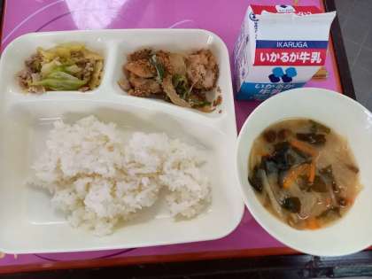 ごはん 牛乳 鶏肉のごまだれ焼き なめこのみそ汁 キャベツの炒め物