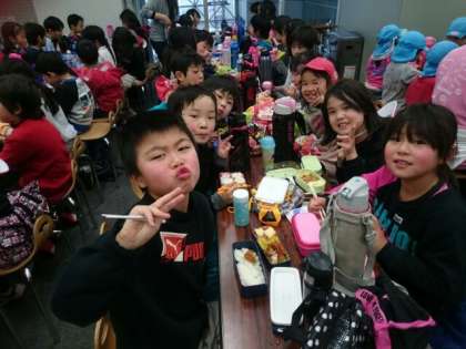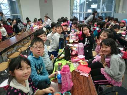 でも、キッズプラザの中で、おうちの方が作っていただいたお弁当を、おいしくいただいています。