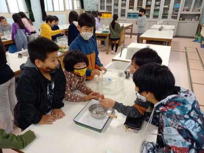 空気や水の温度を変えると体積はどのように変わるのか、今日は実験を通して考えました。