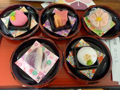 先日の1組に引き続き、今日は2組でも「和菓子」の美しさ、繊細さから、「和の文化」について考える学習をしました。