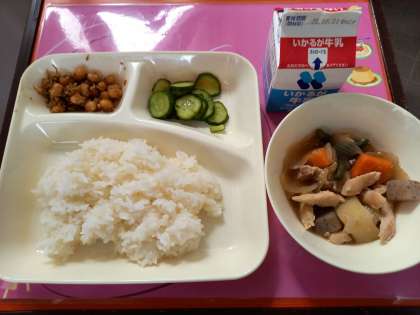 ごはん 牛乳 鶏肉と野菜の煮物 じゃこ豆 あっさりきゅうり