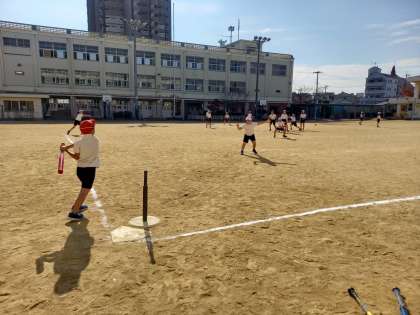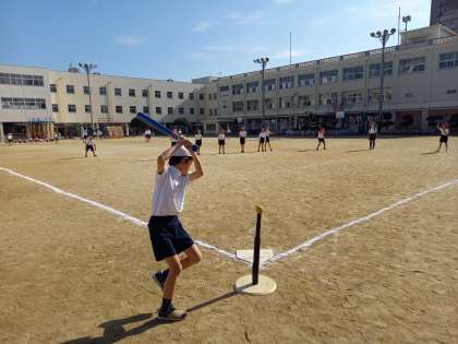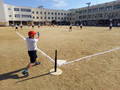 「ティーボール」は野球とよく似た競技ですが、バッターが球を打ちやすいよう、バッティングティーとよばれる棒の先端に球をのせ、止まっている球をバットで打ちます。