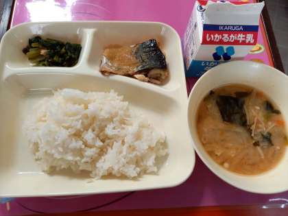 ごはん 牛乳 鯖のみぞれかけ みそ汁 小松菜の煮びたし