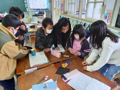 3年生は理科の時間に、乾電池を使った装置を使って電気を通すもの、通さないものを調べています。