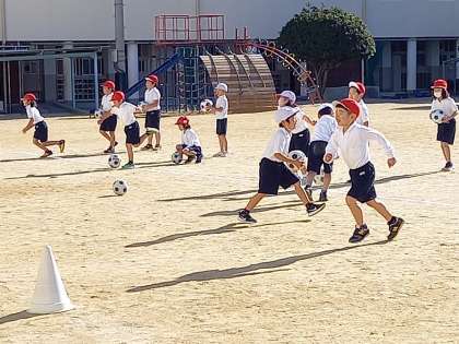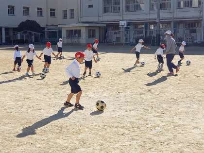 昨日から寒くなってきていますが、子どもたちは元気にボールを追いかけていました。