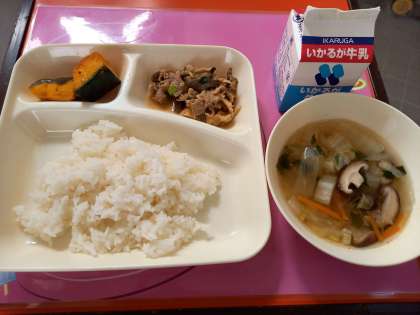 ごはん 牛乳 豚肉と干しずいきの味噌煮