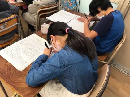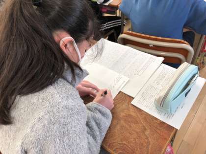 卒業文集の清書を書いていたのです。グッと息をするのも堪えて一文字一文字に想いを込めて書いている姿は、さすが高学年です。