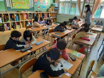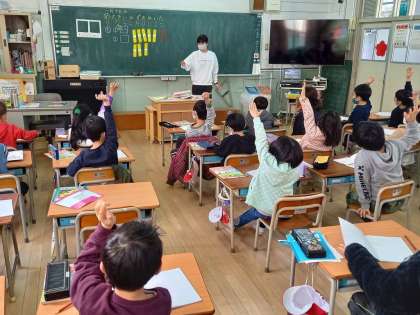 1年生は算数の時間に「大きいかず」の学習をしています。