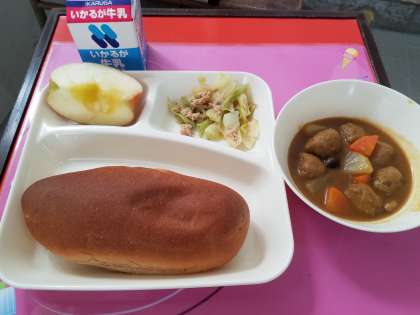 パン 牛乳 ミートボールとやさいのカレーに