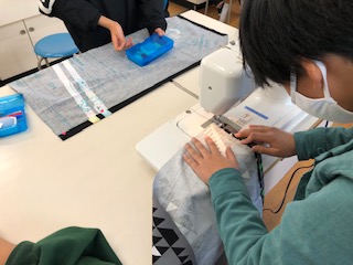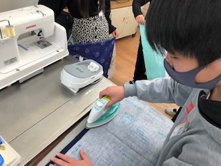慣れない裁縫に「先生助けて〜」と苦戦しながらも楽しんで作業を進めていました。実際に自分が使うものとあって、子どもたちは丁寧に作っていました。完成までの道のりは長そうですが・・・