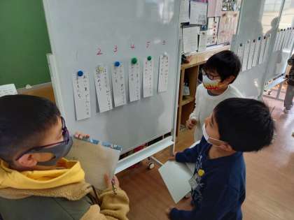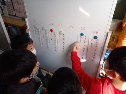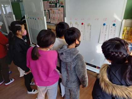 教科書には有名な俳句が掲載されていますが、3年生もさっそく「俳句づくり」に挑戦し、お互いの作品を鑑賞しあいました。