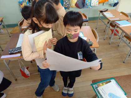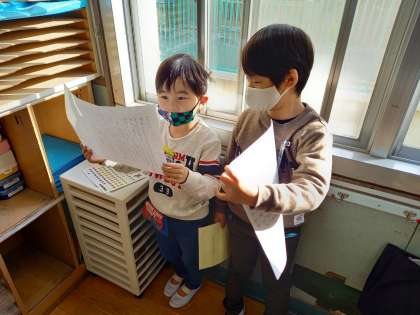 今日は、子どもたち同士で、お互いの作品を読みあって交流しましたよ!