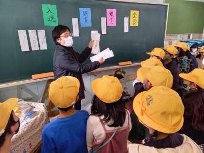 昨日、3年1組の子たちに“句会”の招待状を手渡しに行った6年1組の子どもたち。