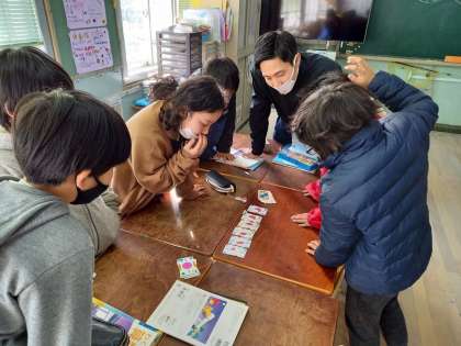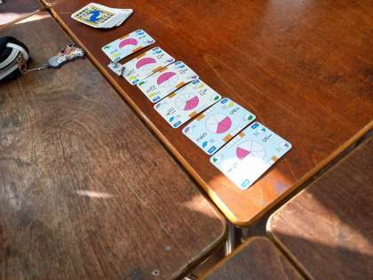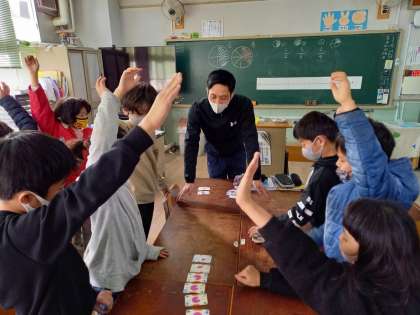 あるグループでは、分数があらわす数の大きさを理解するため、「分数トランプ」を使った学習をしていました。