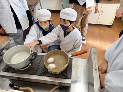 ゆでたまごをつくりました(5年家庭科) (1月30日)