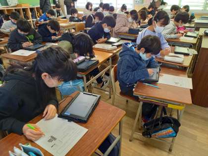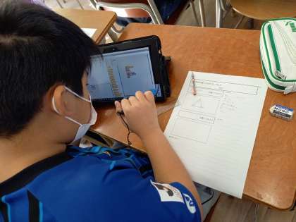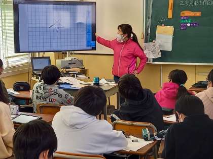 5年生は算数「円と正多角形」の学習の中で、プログラミング学習を行います。