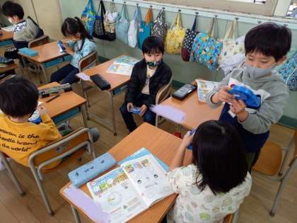 1年生の算数は時計「なんじなんぷん」の学習に入りました。