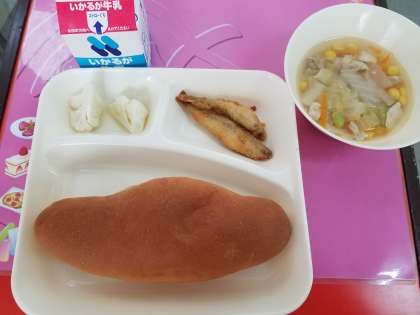 パン 牛乳 わかさぎフライ はくさいのスープ