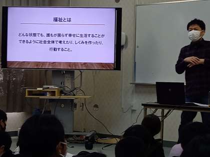 今日は、地域の自立支援施設に勤める精神保健福祉士の方にお越しいただき、「福祉」についてのお話と「働く」ことについてのお話をしていただきました。