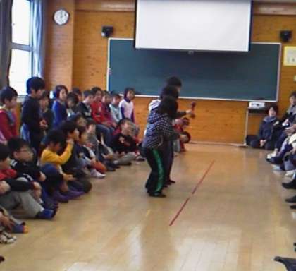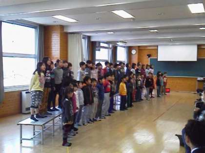 2年生は、歌で発表の流れを作りながら、けん玉や群読・リズム読みなど、グループごとに学習したこと、練習してきたことを発表しました。歌う姿は、みんな体全体でリズムをとって元気に歌っていました。
