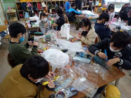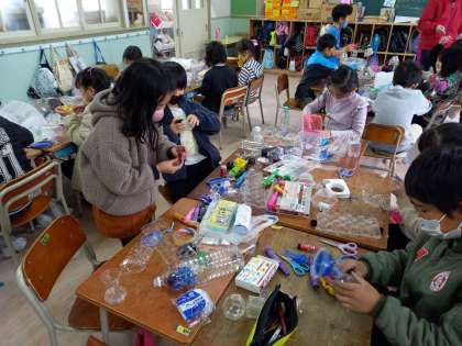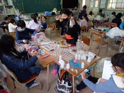 3年生は透明のから容器を使って、“クリスタルのあかり”を作ります。