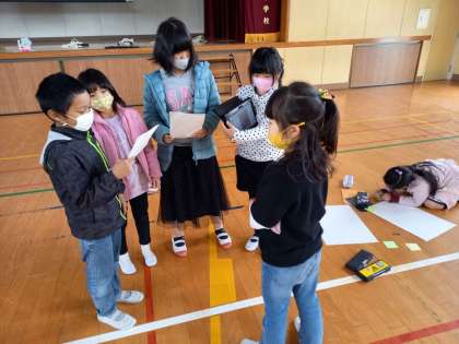 今日は講堂で、各グループが調べ、まとめたことを発表しました。