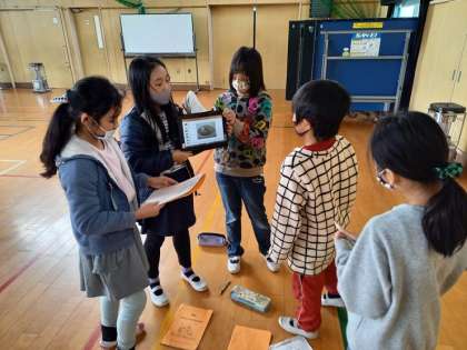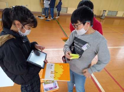 プレゼンテーションの力を育てていくため、自分たちが調べたことをタブレットにまとめ、それらを用いながら説明を行います。