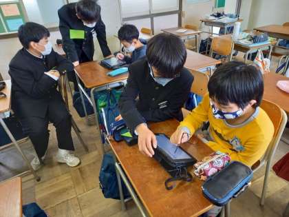 下の写真は、国語、社会、数学(算数)の授業の様子です。